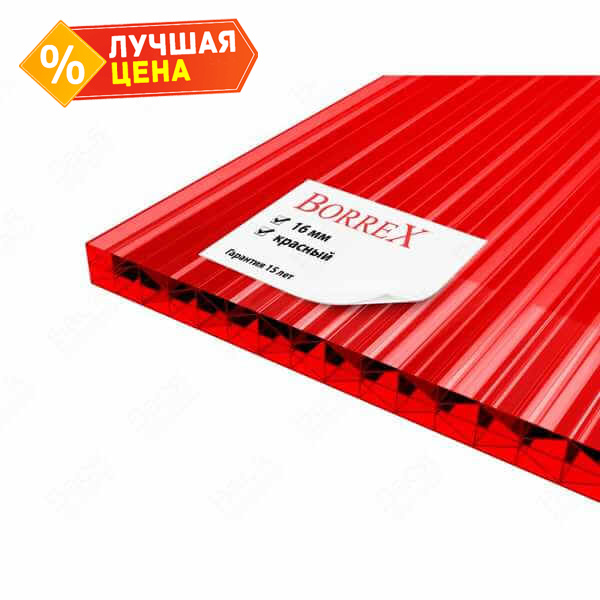 Сотовый поликарбонат 16 мм BORREX красный 2100х6000 мм
