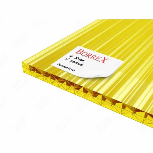 Сотовый поликарбонат 20 мм BORREX желтый 2100х12000 мм