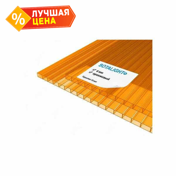 Сотовый поликарбонат 6 мм SOTALIGHT оранжевый 2100х12000 мм