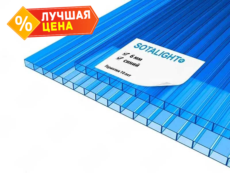 Сотовый поликарбонат 6 мм SOTALIGHT синий 2100х12000 мм
