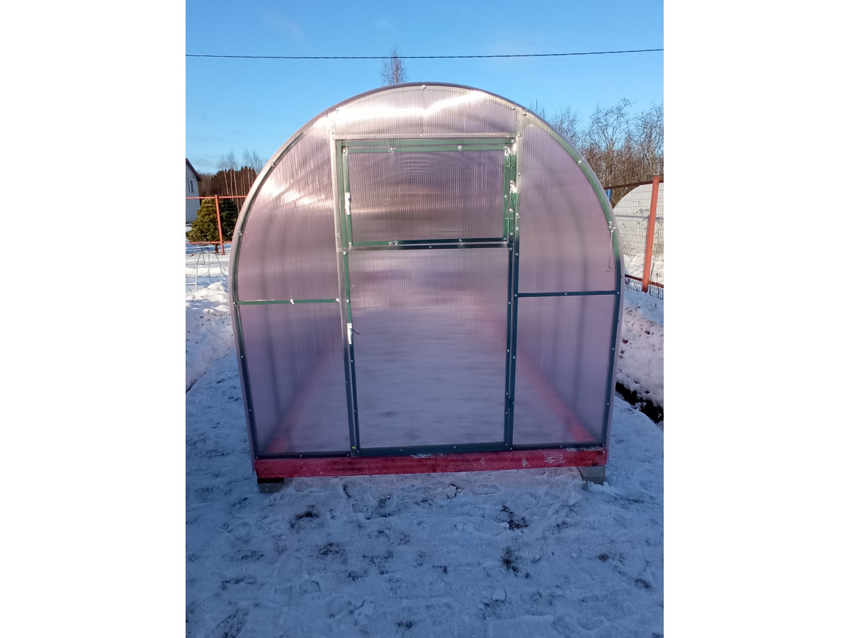 • компактность за счет небольшой ширины теплицы (2,1 метра)