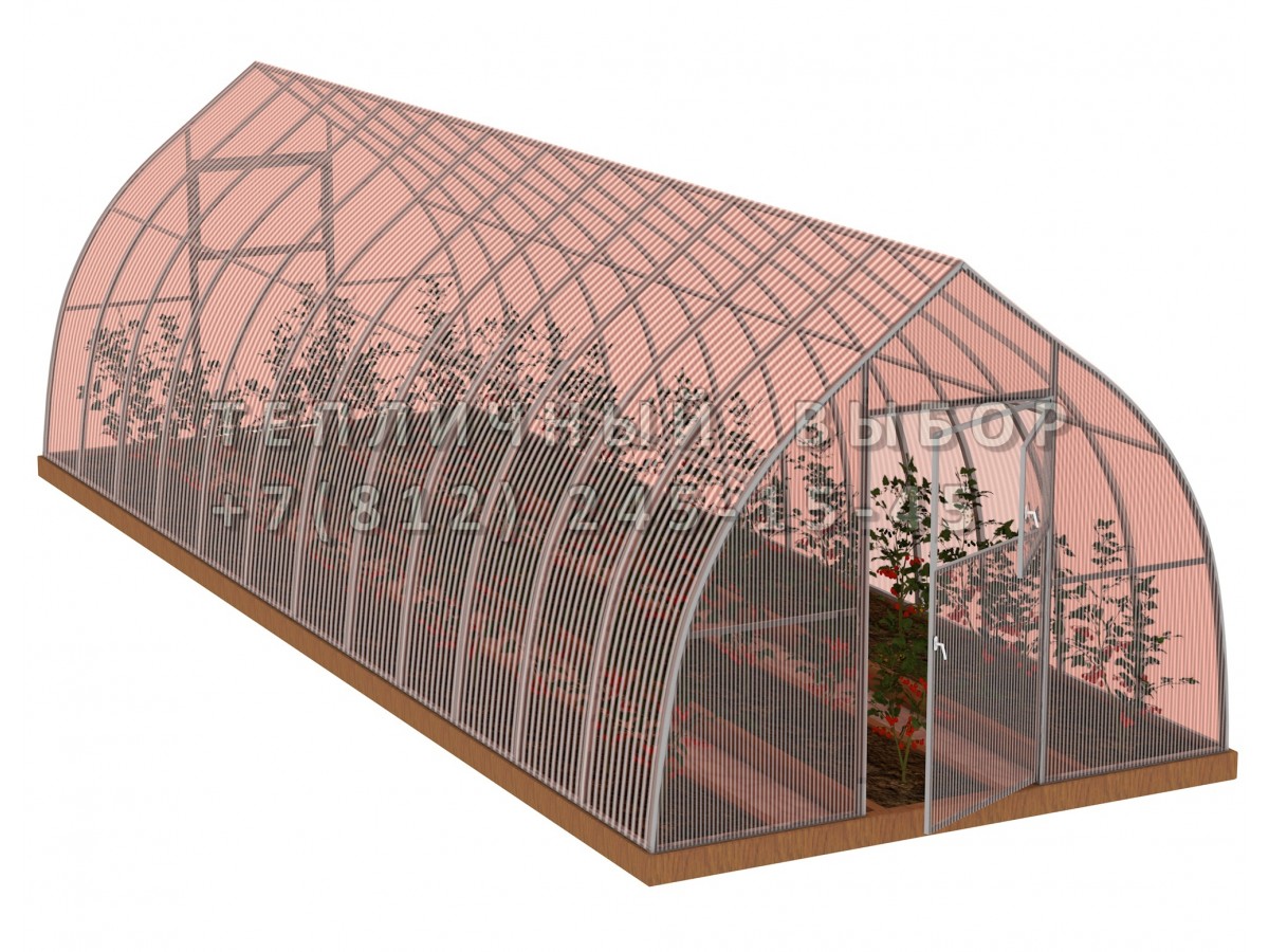 Теплица из поликарбоната-фито Усиленная Капелька 3х10 h=2.3 м профиль 25х25 мм