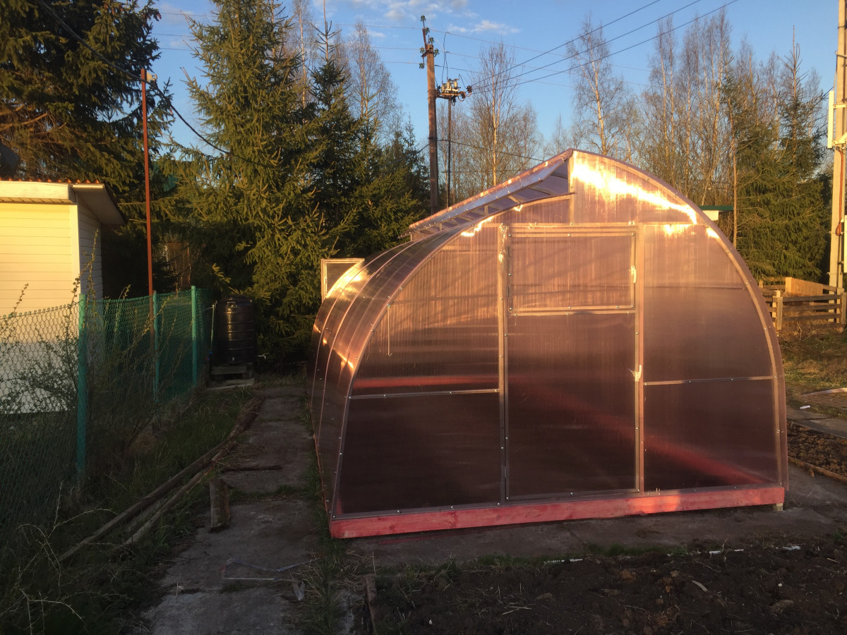 • арочная форма теплицы способствует скатыванию снега в зимний период и равномерному распределению солнечного света, в теплице отсутствуют неосвещенные участки;