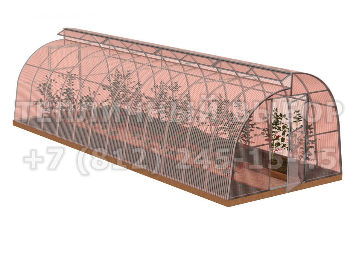 • длина фрамуги соответствует длине теплицы, высота 22 см, открывается изнутри и фиксируется в открытом состоянии с помощью ограничителя;