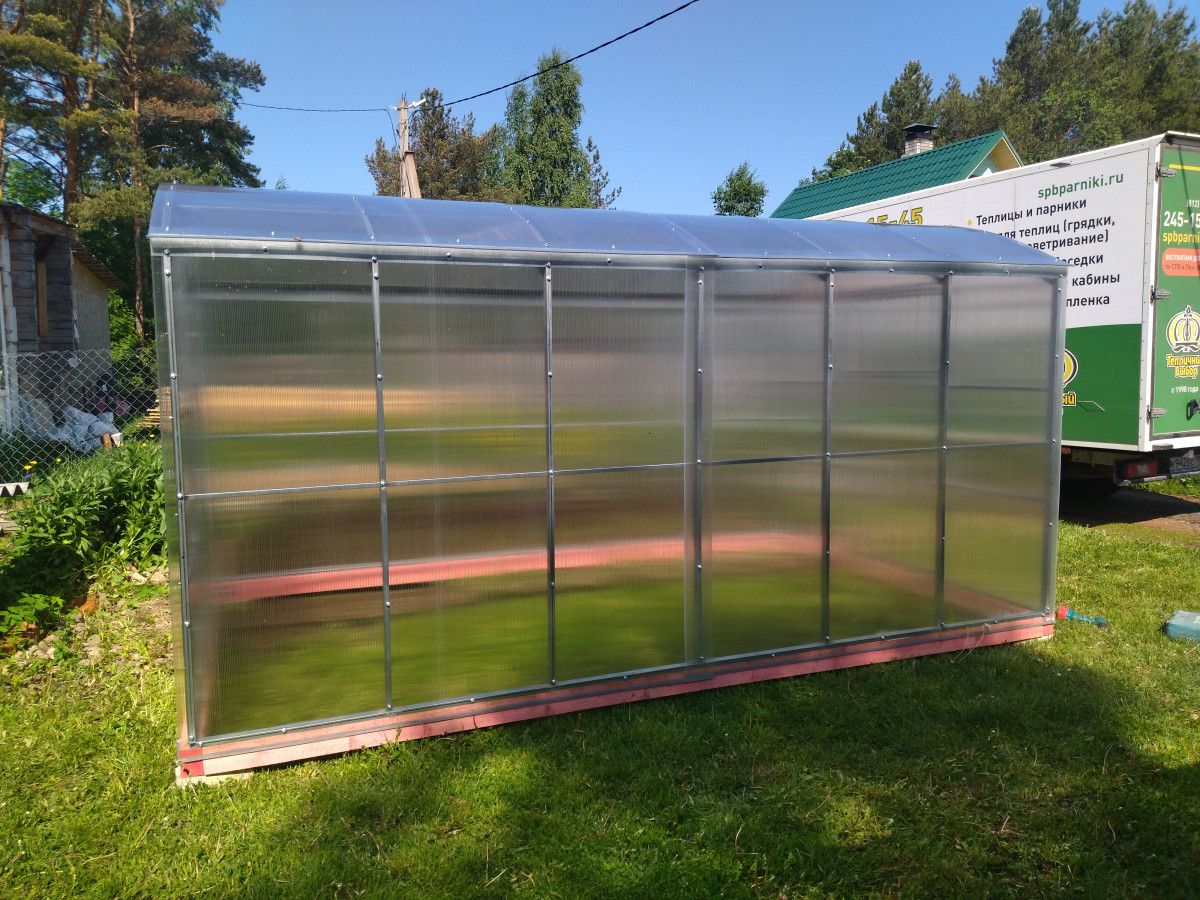 Возможна самостоятельная сборка по подробной инструкции. Сборка теплицы монтажниками-профессионалами компании занимает порядка 3 часов. В качестве основания рекомендуется использовать бетонный, либо деревянный фундамент из бруса. Предварительно брус необходимо обработать антисептиком. Полный комплект состоит из: