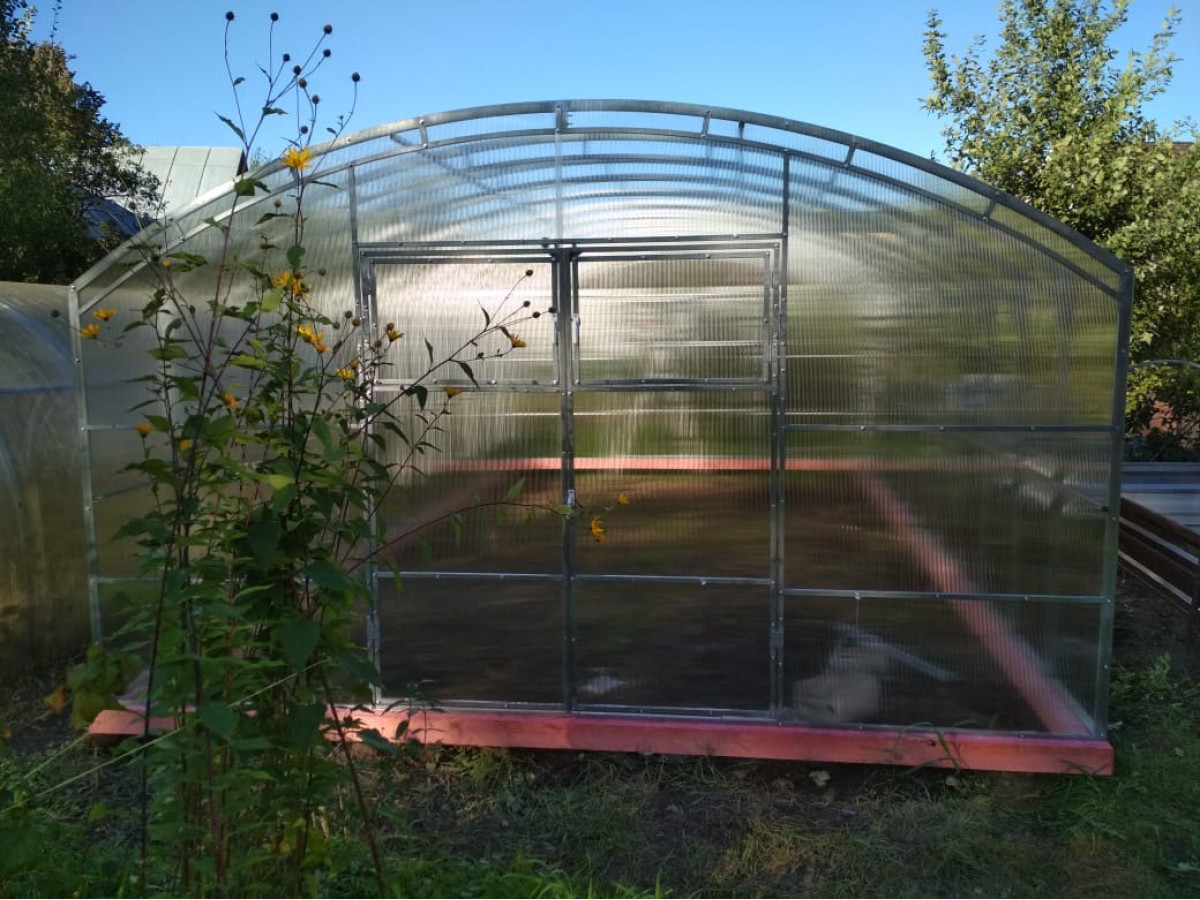 • широкая 4 м, ширина теплицы позволяет организовать 3 широкие полноценные грядки с комфортными проходами между ними;