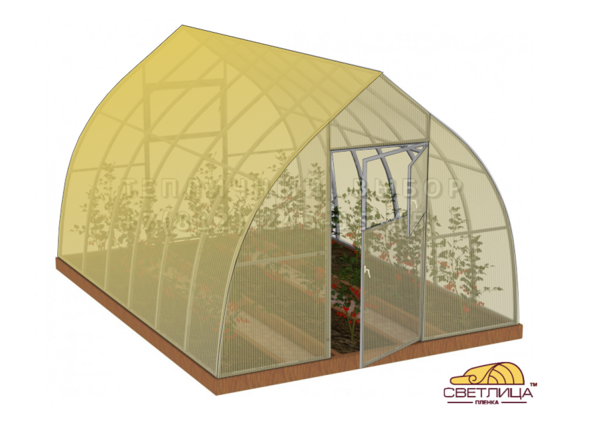 • укрывной материал - легендарная пленка «Светлица» толщиной 150 мкм, имеет уникальный состав, который делает ее прочной, эластичной и долговечной (не менее 7 лет без снятия на зиму)